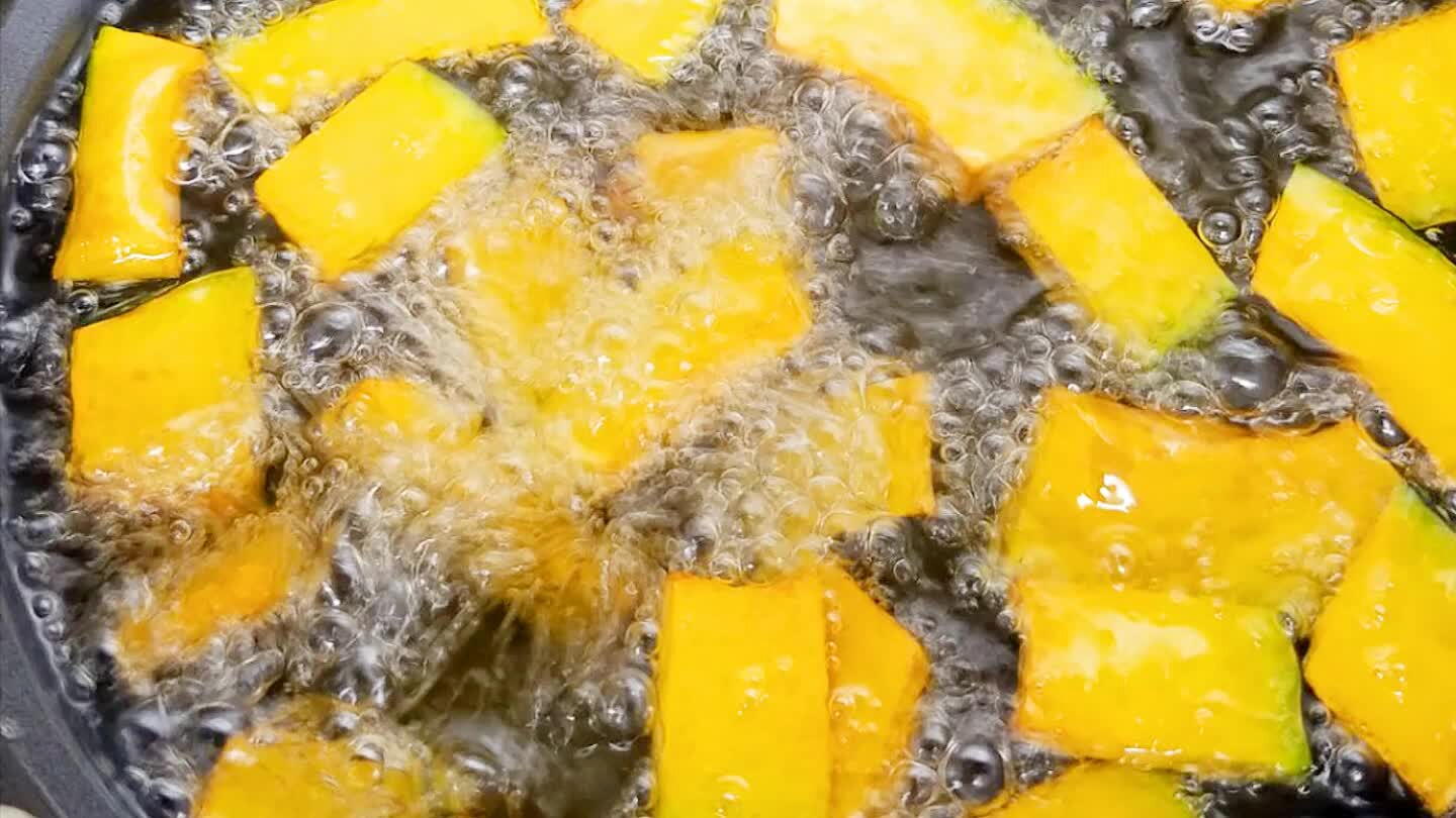 カボチャは素揚げに。レンコンは水気を取り除いて素揚げして、塩をふる。