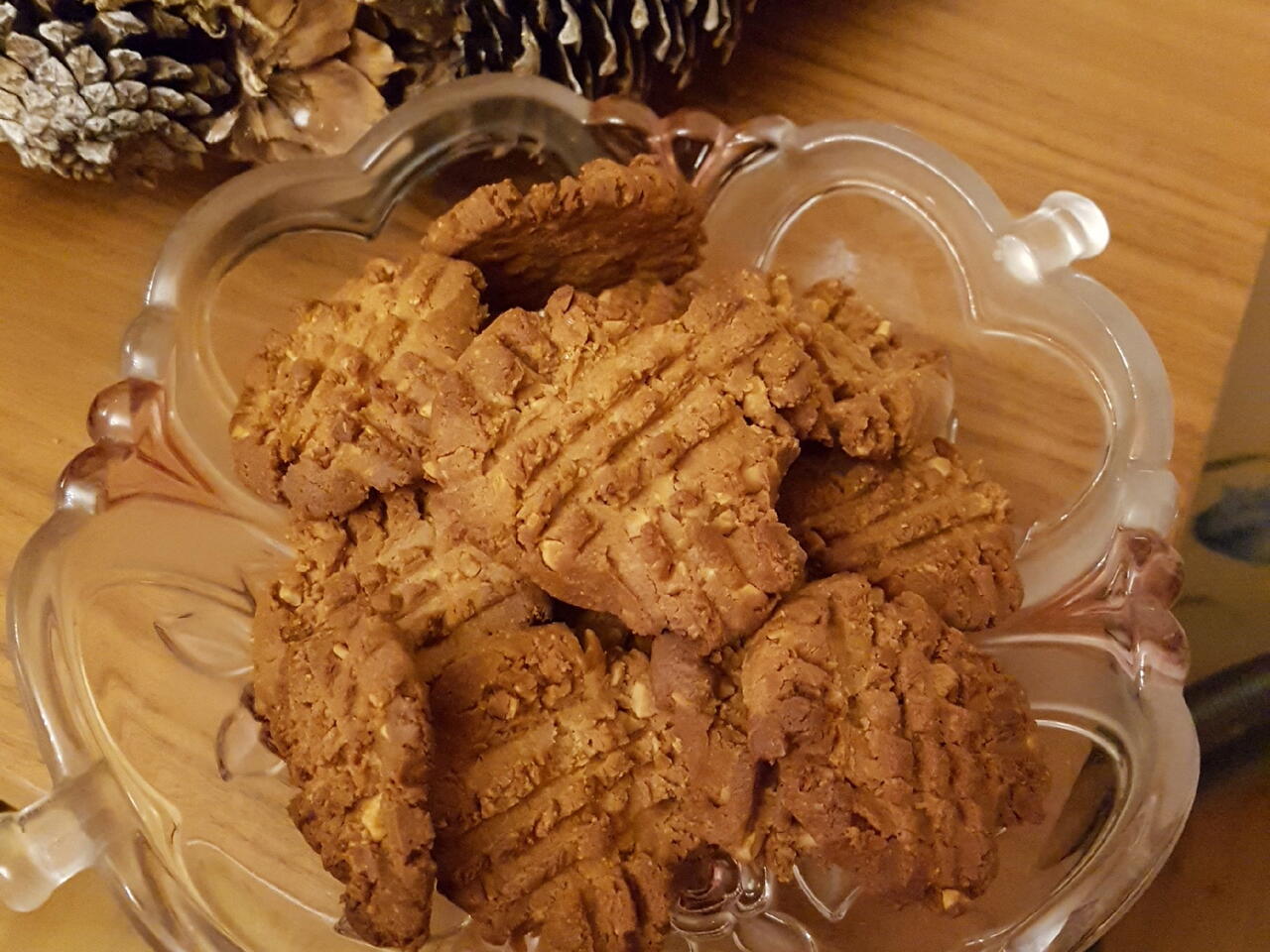 Uz paplātes uzliek cepamo papīru. Sākam veidot cepumus. 1. Izveidojam nelielas bumbiņas un uzliekam uz paplātes. 2. Ar dakšu saspiest krusteniski , izveidojot formu.