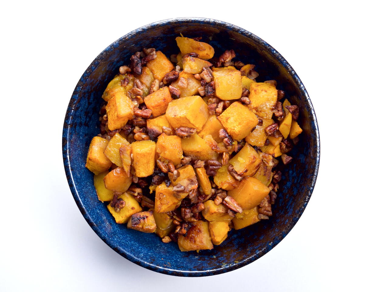 Hornear durante unos 60 minutos o hasta que la calabaza esté tierna.