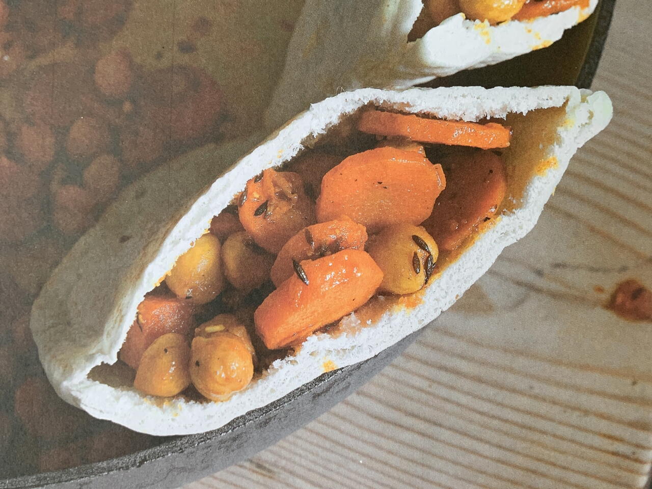 Fordel kikertblandingen i lommen på pitabrødene, og ha på en skje med yoghurt eller rømme. Server med en gang.
