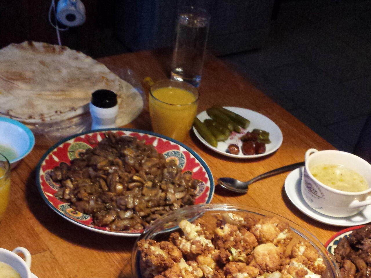 Bak de uien in een beetje boter voor 2 minuten, voeg de champignons toe en roerbak 2 tot 3 minuten, doe een scheutje ketjap naar smaak (3el) erbij.