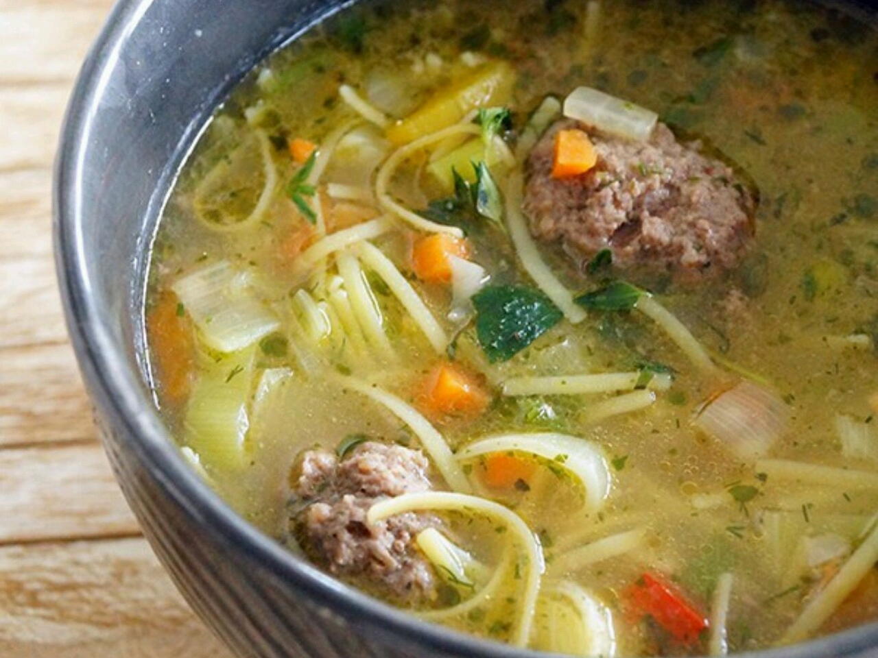Zet het water, de bouillonblokjes,het vlees,het mergpijpje en de laurierblaadjes 2uur op het vuur. Ondertussen maak je de gehaktballetjes en braad je deze aan. Haal na 2uur het mergpijpje en laurierblaadje eruit en doe de gehaktballetjes,groenten en vermicelli erin. Klaar!