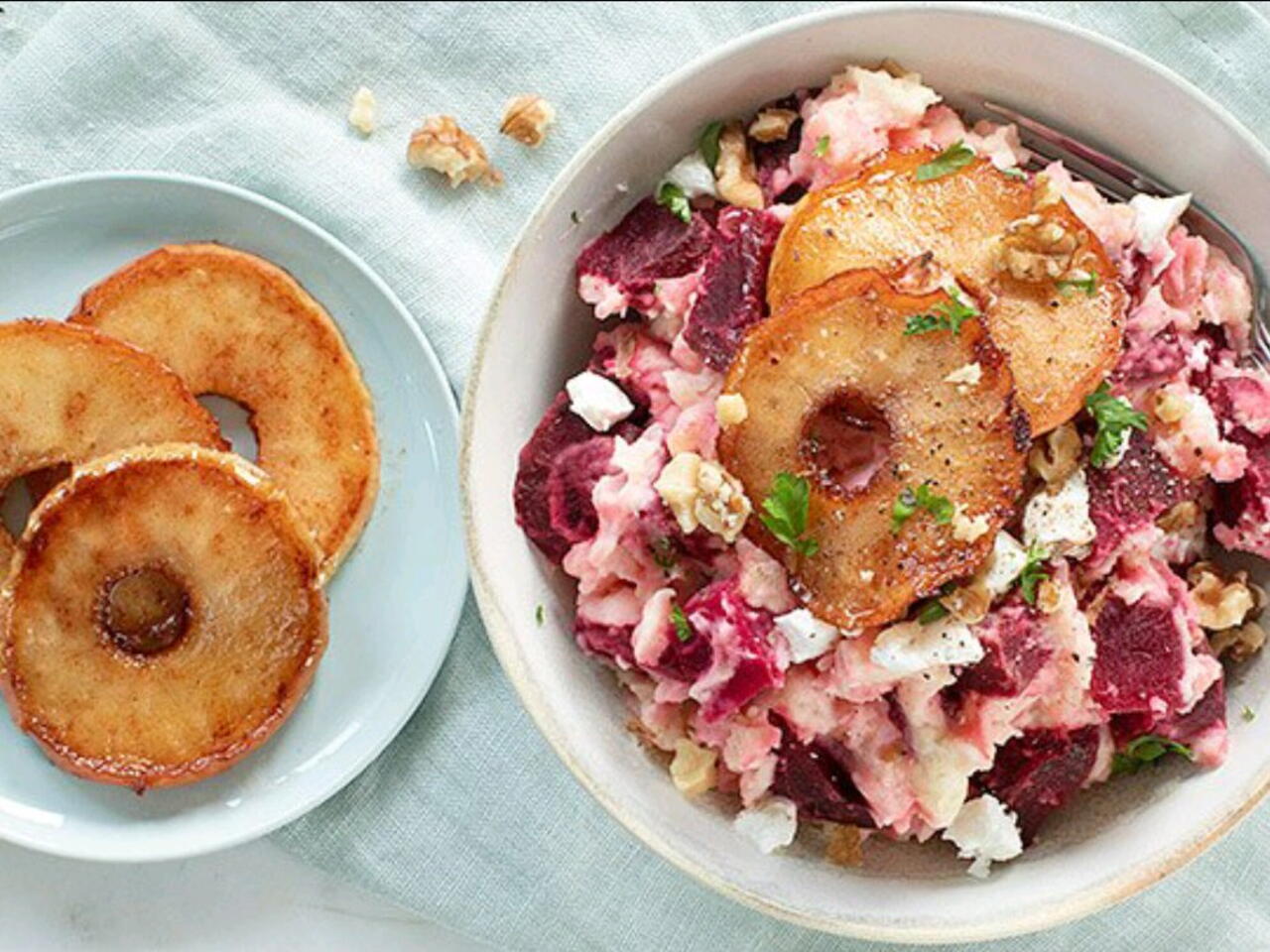 Rode Bieten Stamppot Met Spekjes en Appel.