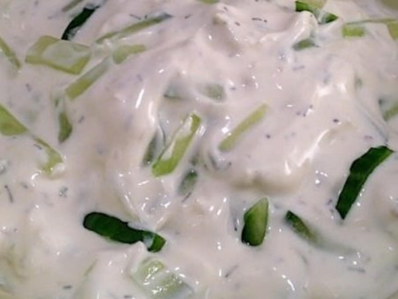 Rasp de komkommer en laat het goed uitlekken. Je kunt dit proces versnellen door wat zout op de komkommer te strooien