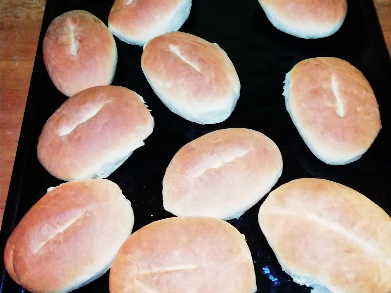 Kiedy bułki wyrosną delikatnie nacinamy wzdłuż bądź jak kto woli. Pieczemy 15 minut w 200°C.