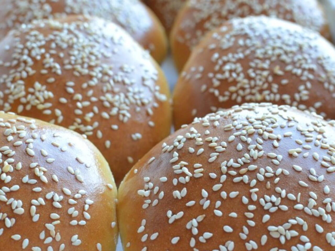 Włożyć bułki do nagrzanego piekarnika i piec ok. 15 minut, do czasu gdy będą ładnie zarumienione. Bułki powinny być ostudzone przed przekrojeniem.