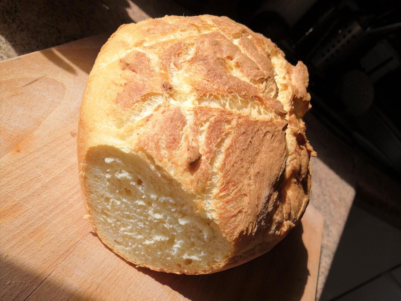 Wszystkie składniki ze sobą wymieszać, wyrobić ciasto, odstawić na co najmniej 1h w ciepłym miejscu do wyrośnięcia . Nagrzać piekarnik na 220 stopni z naczyniem żaroodpornym z pokrywką. Wyciągnąć naczynie, wsadzić ciasto do gorącego naczynia. Zmniejszyć temperaturę do 200 stopni i włożyć chlebek do nagrzanego piekarnika z pokrywką. Piec 30min pod przykrywką, później 20min bez przykrywki.