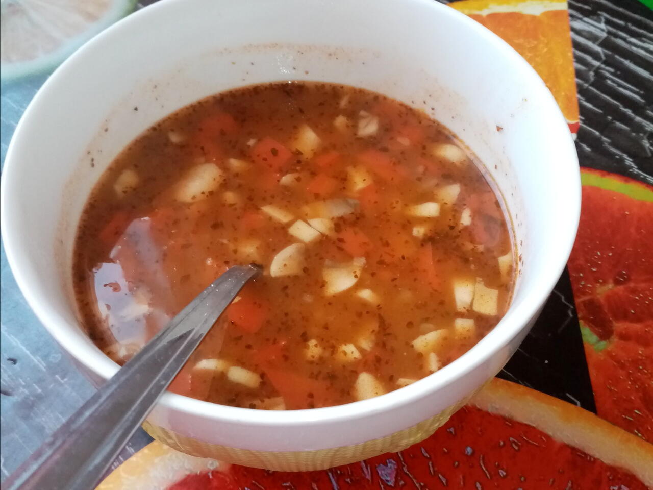 Ziemniaki ugotować, jak już będą miękkie dodać podsmazone wyżej warzywa. Nie trzeba wg dodawać przypraw. Sama w sobie już mo,jest lekko ostra :D Podgotowac jeszcze z 10 min. I dodać proszki - zmieszane w zimnej wodzie. Daje zdjęcie (ja kupiłam je w biedronce). I podgotowac jeszcze z 10min /15min na średnim ogniu. Smacznego!!! :) z tyłu również jest podane jak należy zrobić.