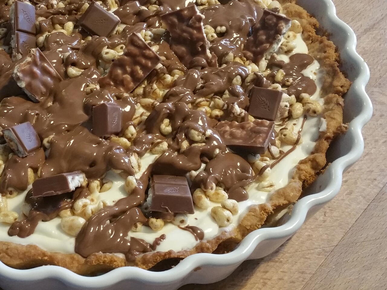 Super słodka czekoladowa tarta o smaku ulubionych batoników Kinder Country, ulubienica salonów i przyjęć, oraz zwolenniczka wybrednych podniebień.