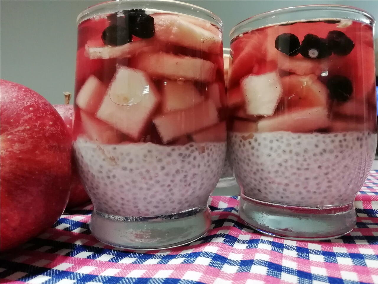 Nasionka namaczamy w mleku kokosowym wymieszanym ze zwykłym. 1 łyżka stołowa nasionek chia = 2 łyżki płynu. Odstawiamy na 25min. Gdy są za gęste dolej poprostu mleka 😁 Rozlewamy w szklanki. Kroimy owoce, zalewamy galaretką i posypujemy suszoną aronią. Wkładamy do lodówki aż galaretka stężeje. I tyle. Smaczliwego życzy Kaszka 😋