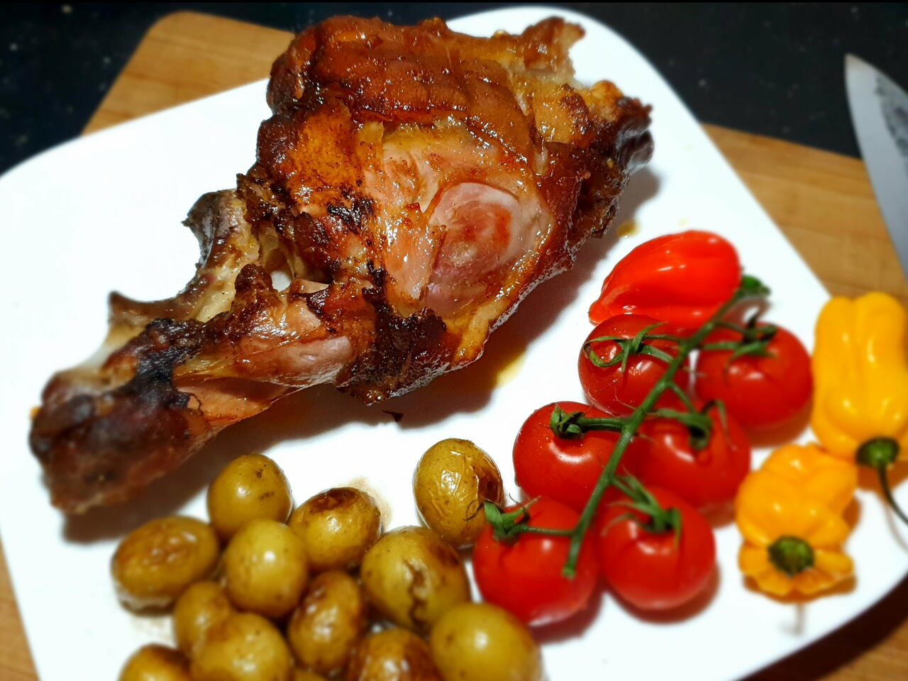 Często kontrolować, podlewać wydobywającym się sosem. Jeżeli piekarnik jest za słaby można użyć pochodni i zapiec skórkę tak żeby była chrupiąca jeszcze bardziej, po uprzednich kilkudziesięciu minutach w piekarniku.