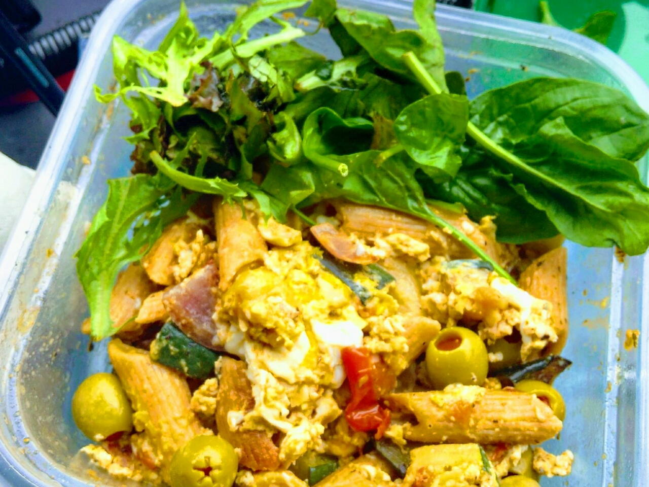 Jajecznica Penne Z Cukinią i Oliwkami