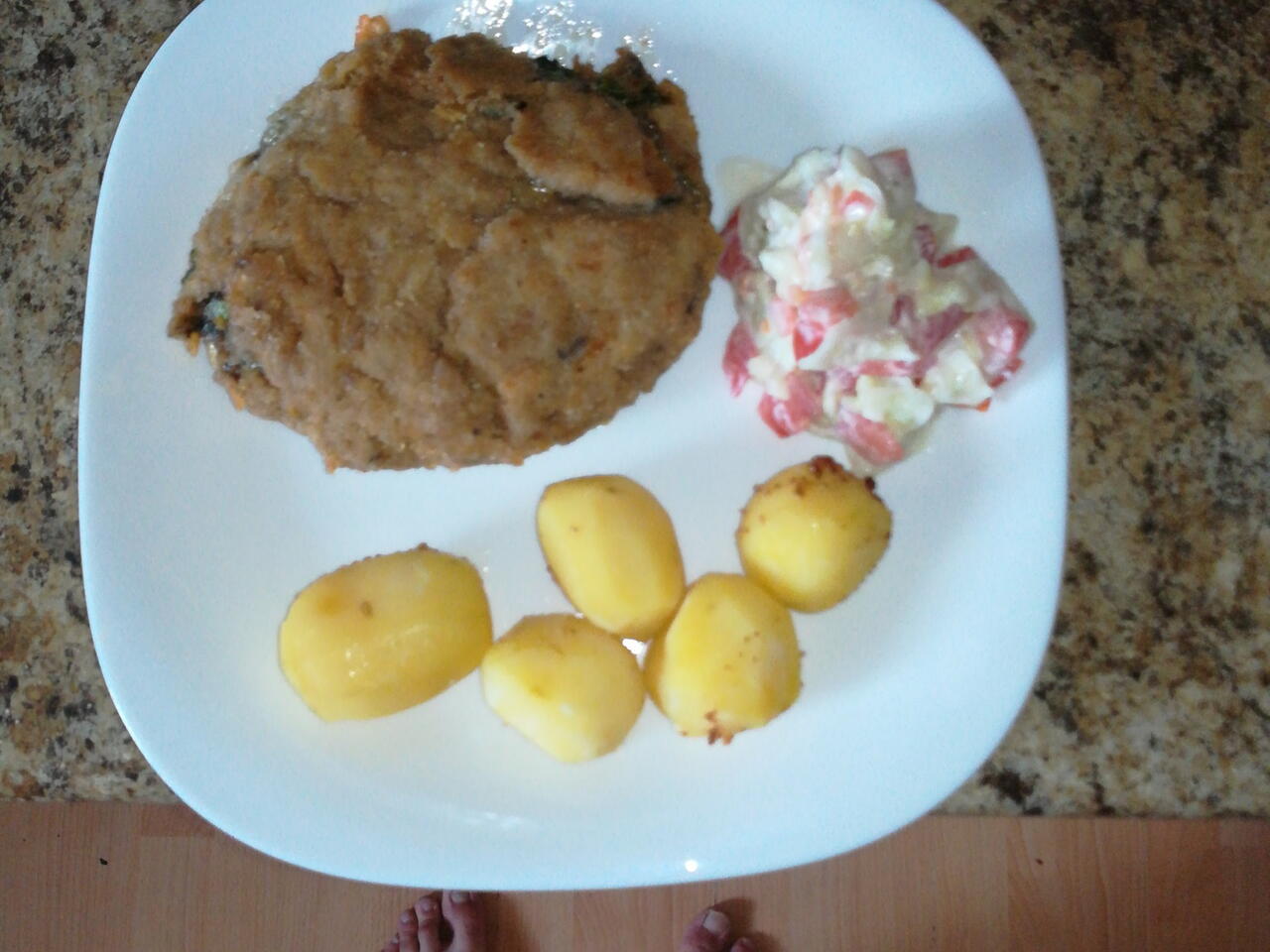 Tak przygotowane kotlety podajemy z ziemniaczkami i mizeria. SMACZNEGO!!