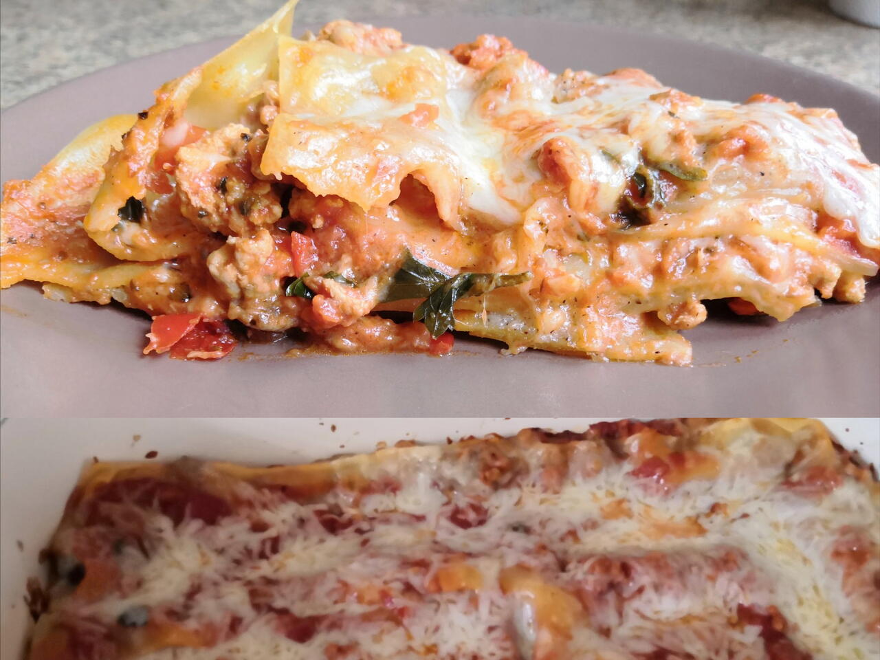 Ostatnia warstwę makaronu smarujemy bezszamelem, rozcienczonym sosem i posypujemy duża ilością sera mozzarelii.Całość przykrywamy pokrywką i pieczemy w nagrzanym piekarniku na 200 stopni do momentu aż makaron całkiem zmięknie i ser się rozpuści.