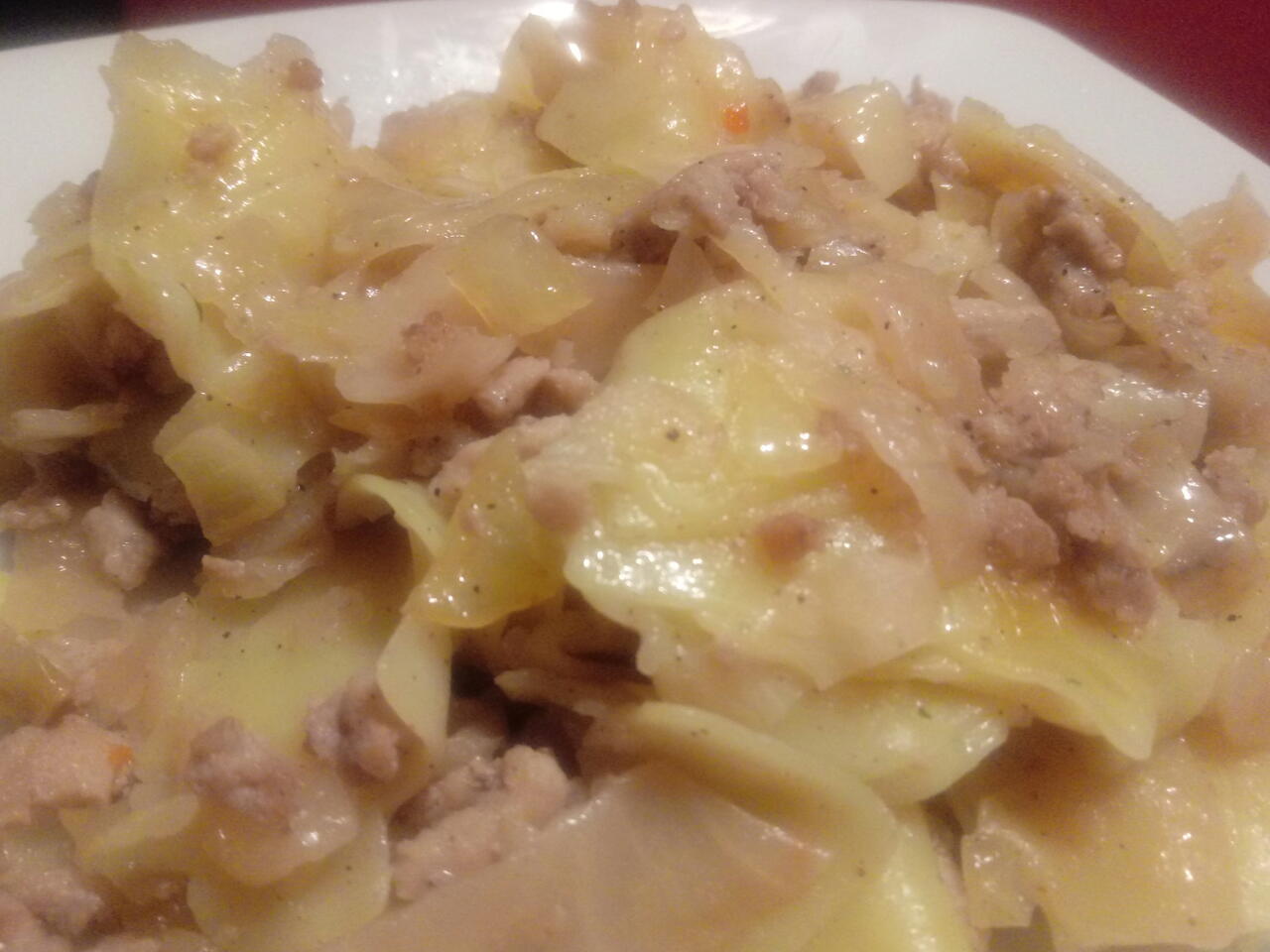 Kapustę poddusic do miękkości ze znaczną ilością przypraw. Cebulkę z miesem mielonym podsmażyć. Ugotować makaron. Wszystko wymieszać i doprawić. Wolę taką wersje łazanek niż z kiełbaską czy boczkiem.