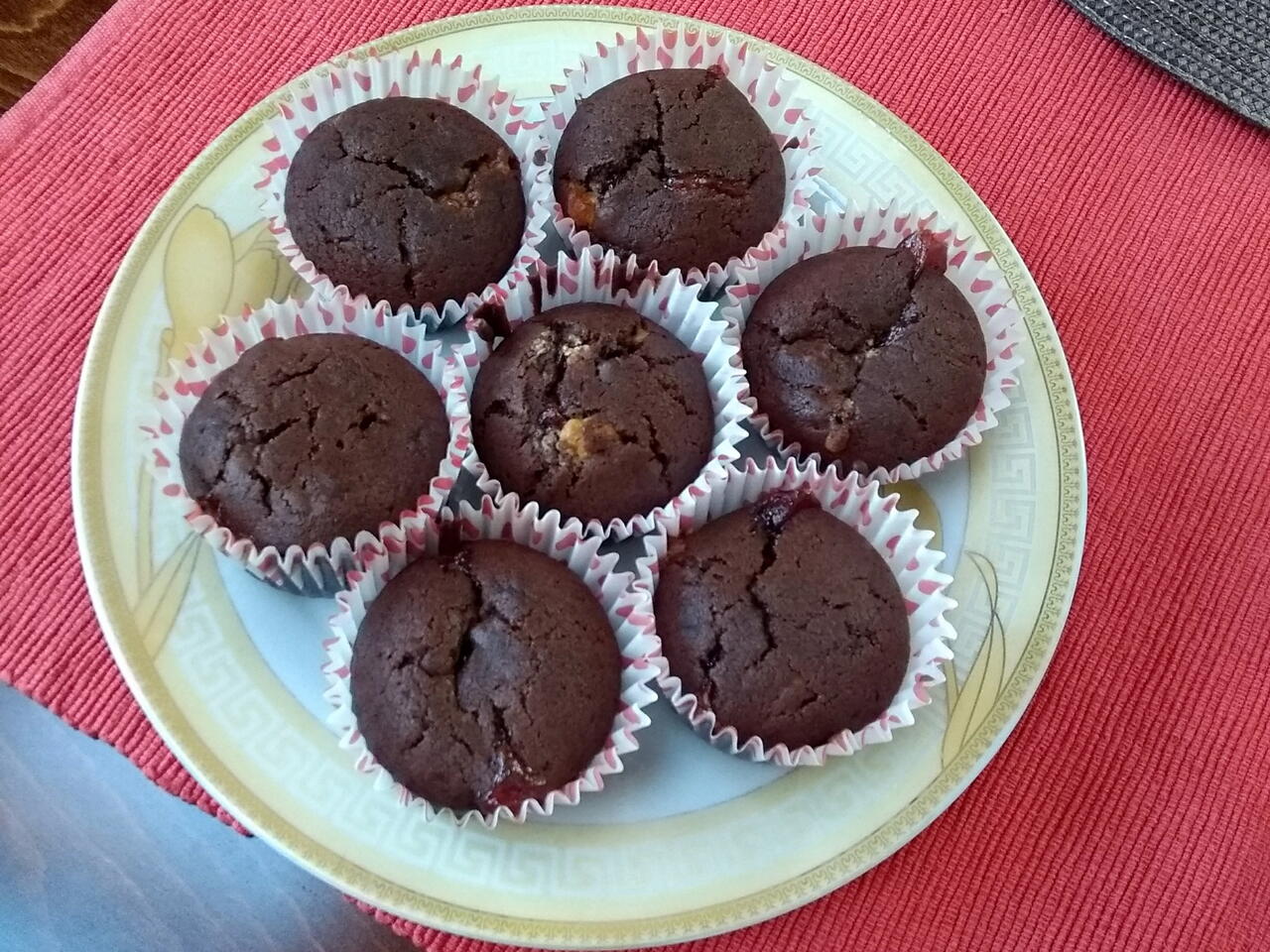 Aby zrobic muffinki z dżemem należy nałożyć pol foremki ciasta, następnie na środek odrobinę dżemu i przykryć dżem resztą ciasta.