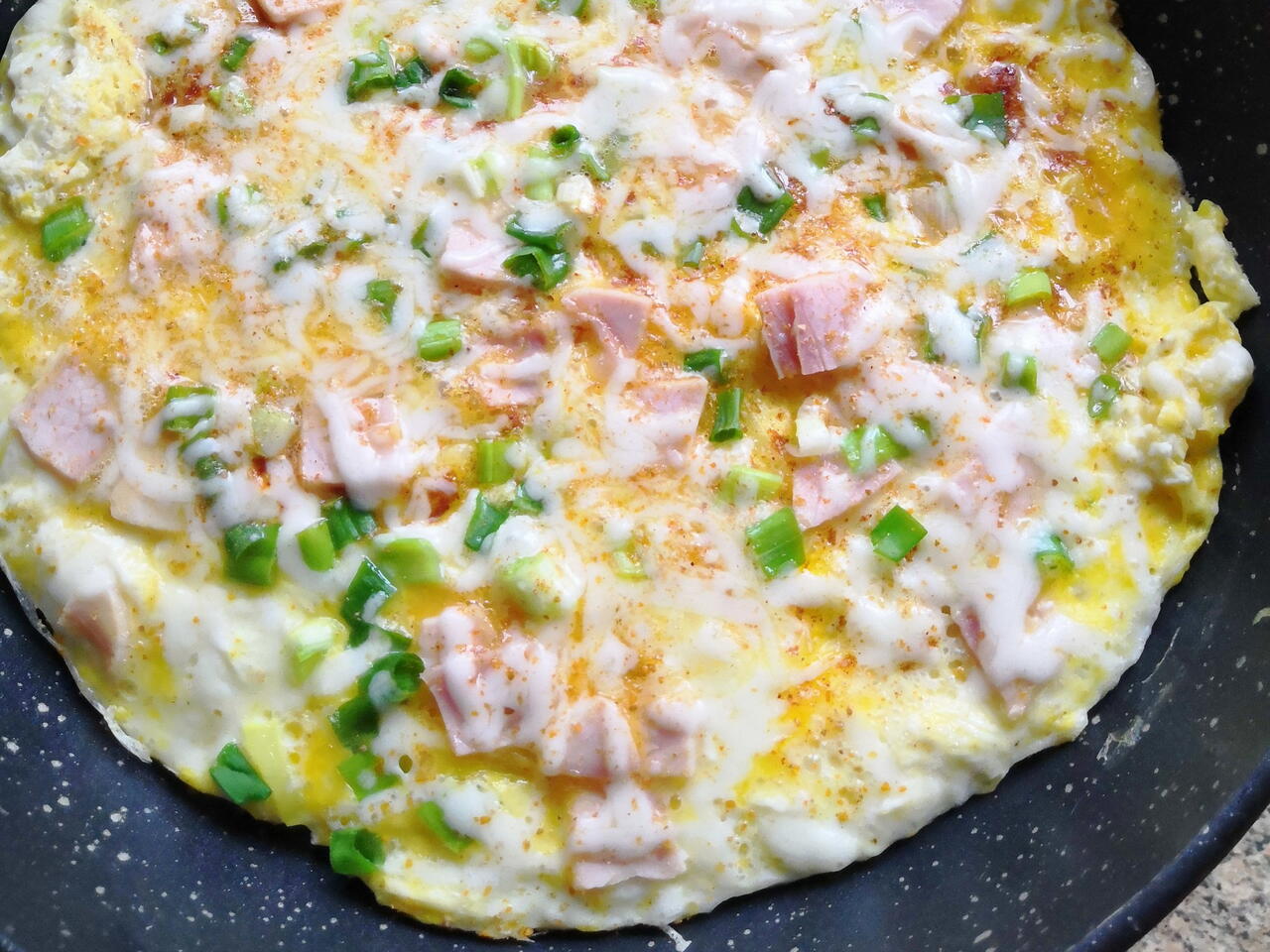 Gdy cebula zmieknie wrzucamy jajko, mieszamu troszke i po krótkiej chwili dorzucamy żółtka. Mieszamy troszke. Przyprawiamy. Wrzucamy resztę na górę, przyklepujemy łyżka i przykrywamy pokrywą do momentu az bedzie dobre. Sprawdzamy co chwile zeby sie nie przypalilo.