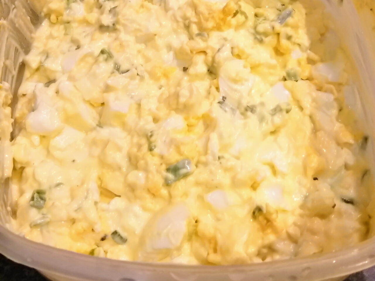 Jajka, majonez, zielona cebulka, sól i pieprz wymieszaj sobie odpowiednią metodą (ręka, noga, widelec).