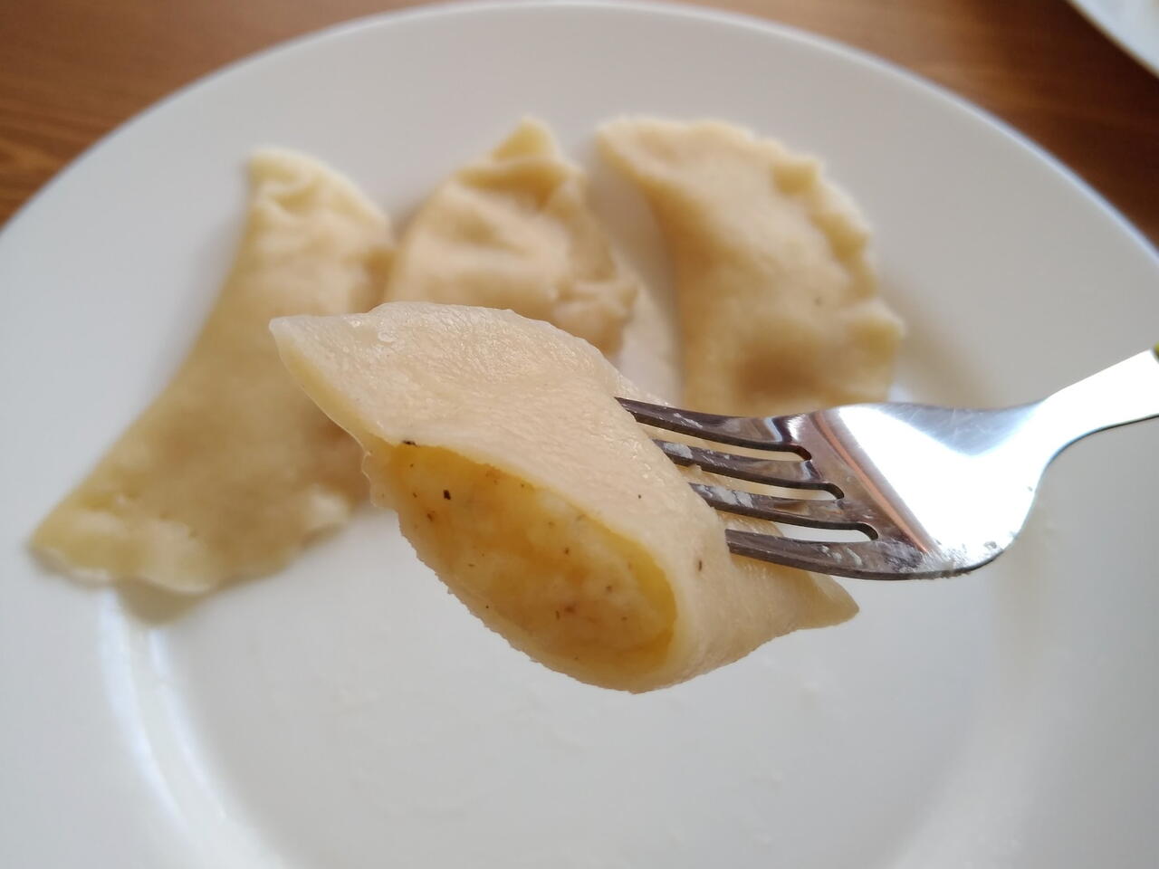 Mąkę połączyć z wrzątkiem i szczyptą soli. Ugnieść ciasto.