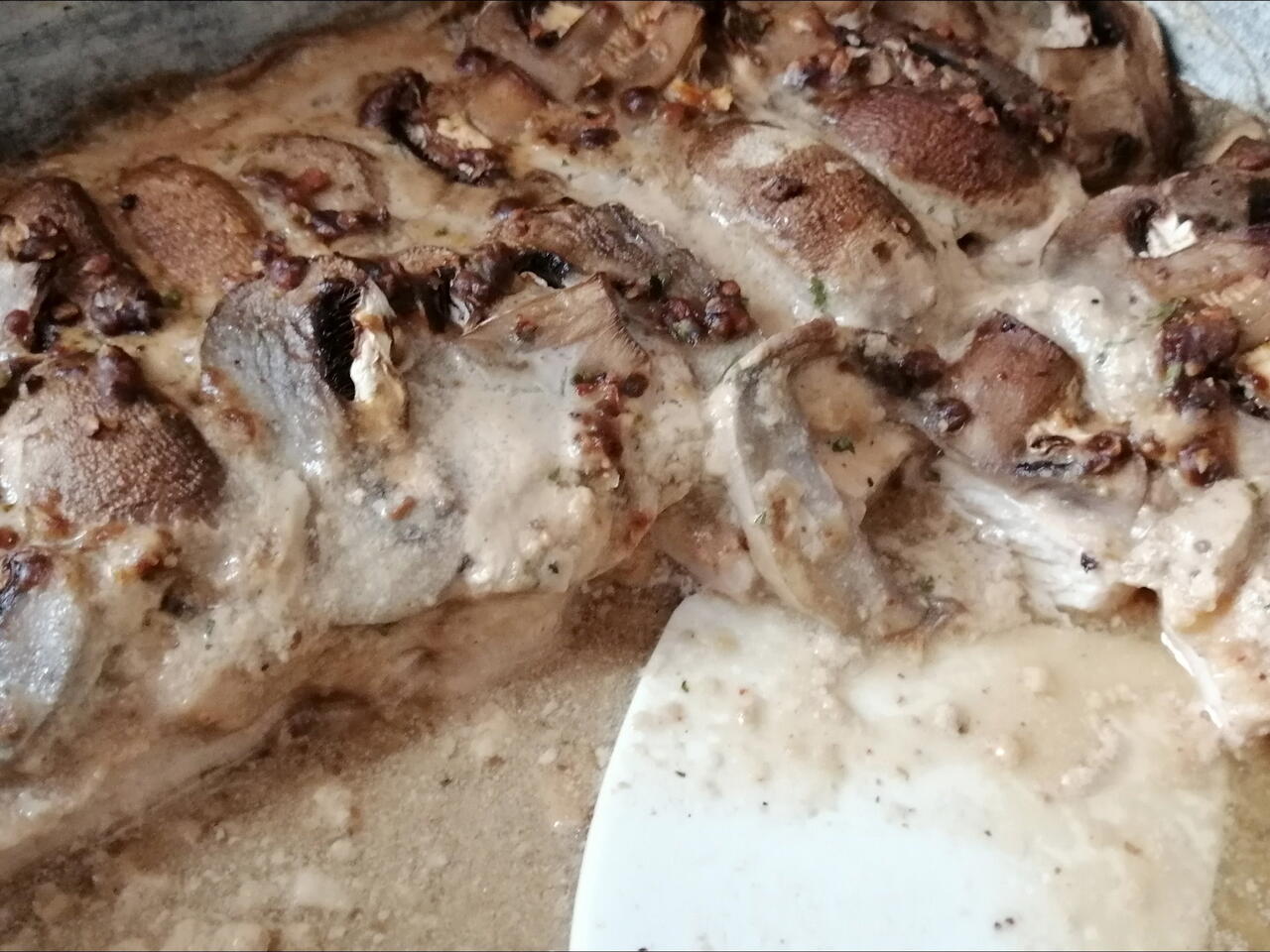 Pierś Z Kurczaka Zapiekana Z Pieczarkami Z Sosem Myśliwskim