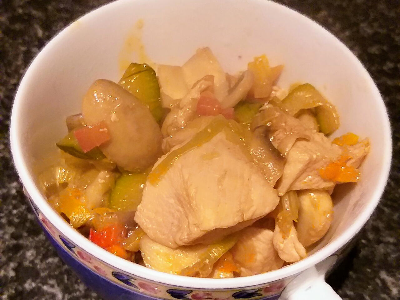Gotuj kilka minut bez pokrywki, żeby odparować nadmiar wody. Potrawkę możesz zaserwować np z ryżem, kaszami lub zjeść bez dodatków. Objętościowo obiad jest odpowiedni dla dwóch osób na dwa dni lub dla całej rodziny na jedno popołudnie.