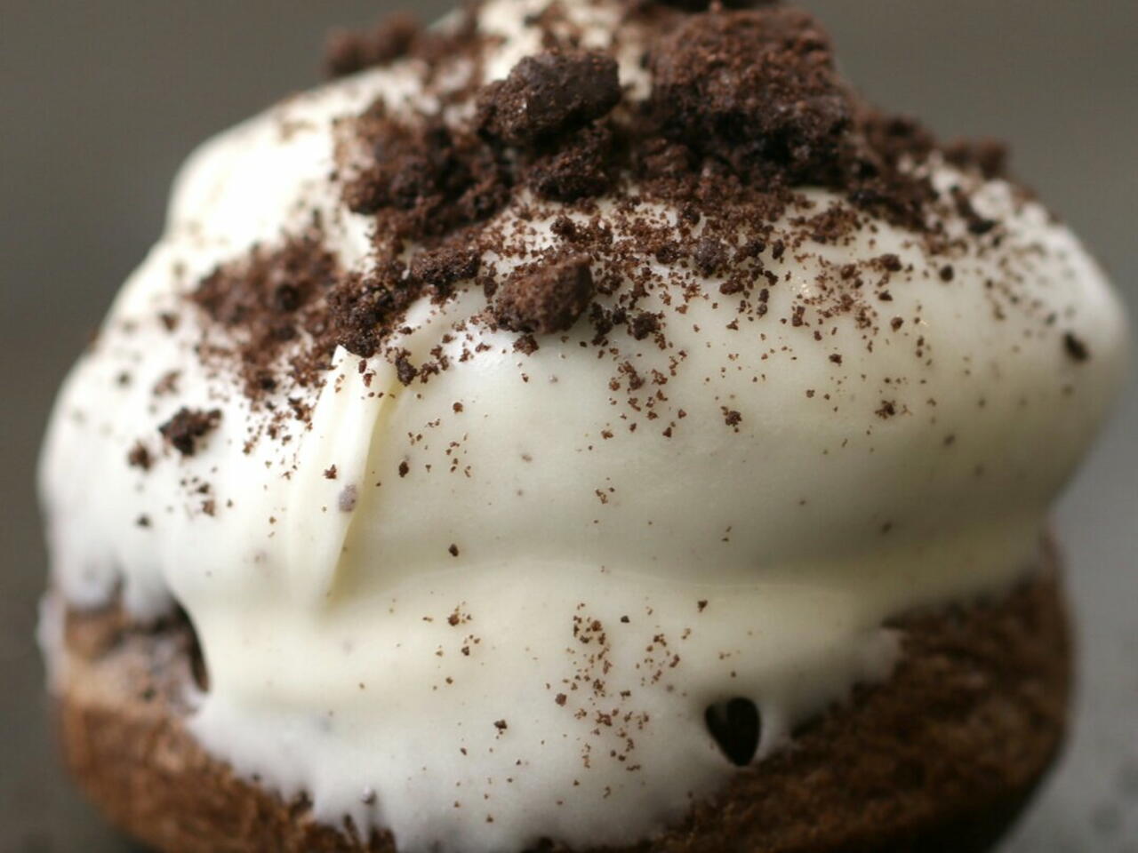 Rozpuszczamy masę w mikrofalówce i maczamy w niej ptysie następnie posypujemy pozostałą częścią poruszonych ciasteczek
