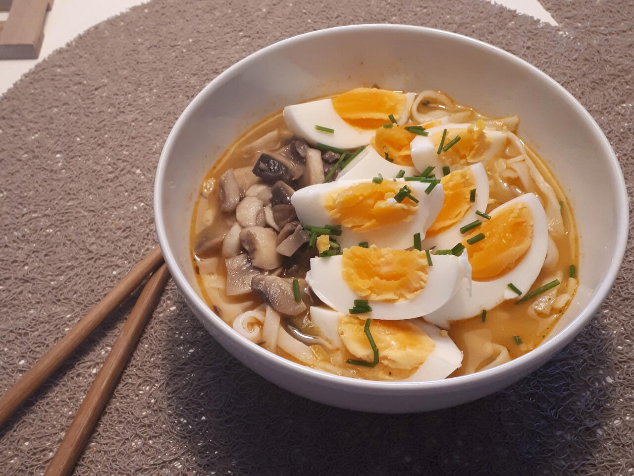 Dodać przyprawy, pokrojony por i sos sojowy w ilości odpowiadającej własnemu gustowi.