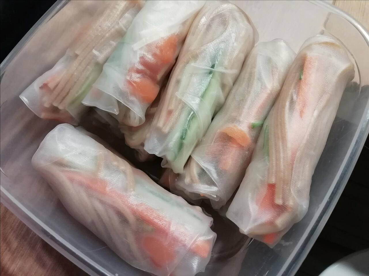 Listek papieru namaczasz w wodzie i przenosisz na wilgotny duży talerz. Kładziesz ulubione składniki z makaronem, posypujesz chili i zwijasz jak naleśniki. Takie sajgonki można jeść na zimno lub smażyć w głębokim tłuszczu do jasno złotego koloru, uwaga pilnować.