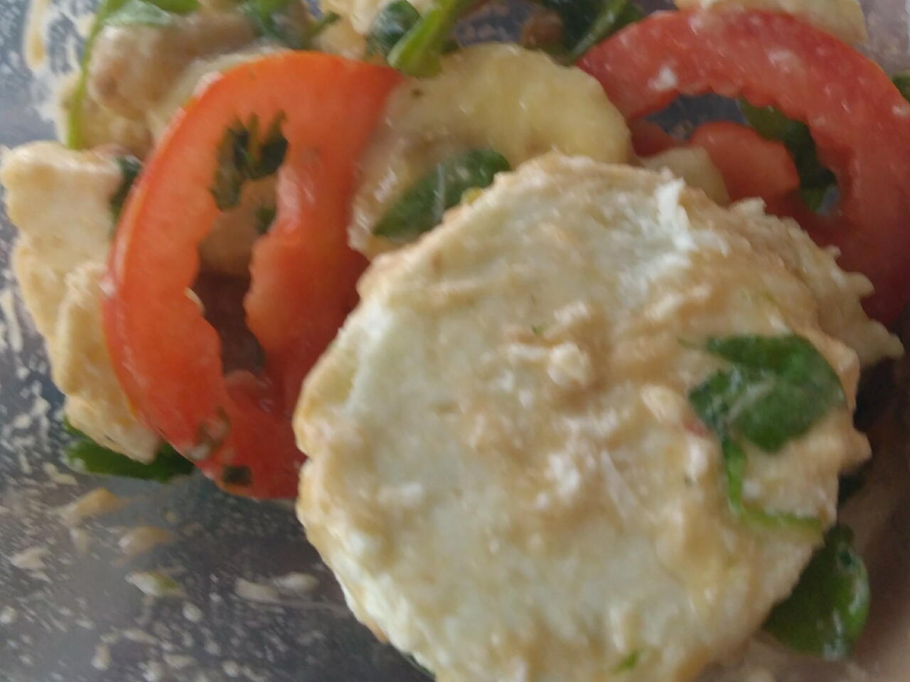 Mozzarella pomidor a banana pokroić w plastry do pojemnika wrzucić garść rukoli lub roszponki dodać pokrojone pomidory mozzarella banana dodać pestki słonecznika lub dyni wlać półtorej łyżki oleju do tego można dodać sól i pieprz do smaku wymieszać i gotowe do spożycia
