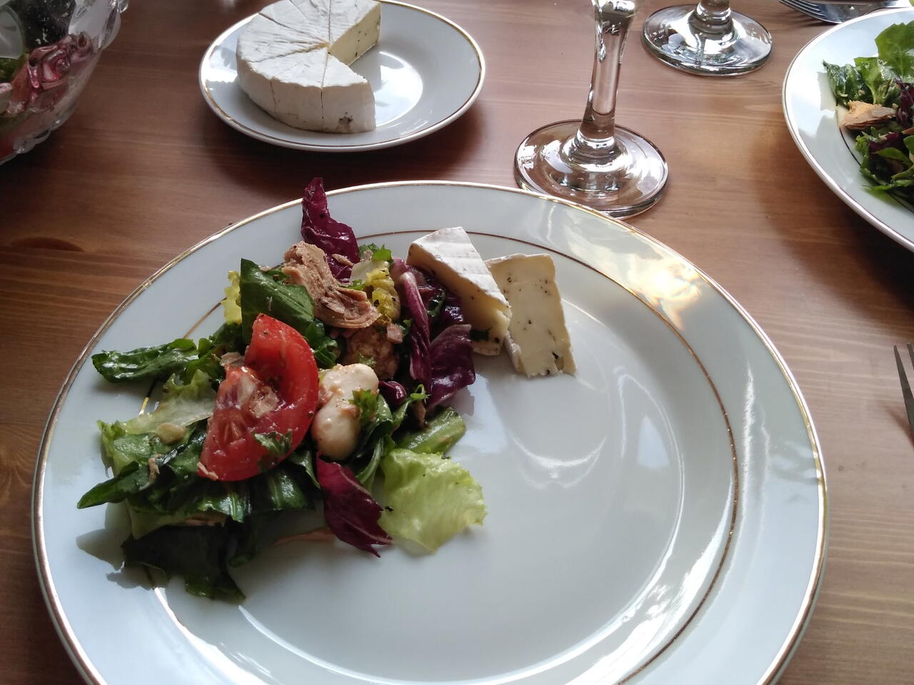 Do dużej miski wsypać sałaty, mini mozarellę, pokrojone pomidory, camembert pokrojony w trójkąty. Tuńczyka rozdrobnić widelcem i razem z oliwą z oliwek połączyć z resztą składników. Doprawić solą i pieprzem. Po przednie wymieszać. Podawać z białym winem.