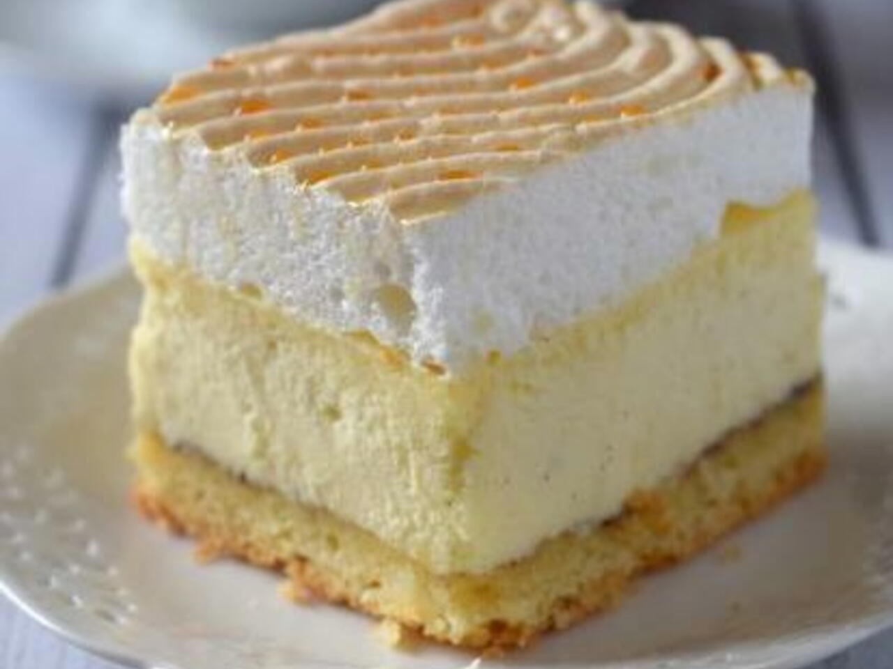 Wyłożyć pianę z białek na upieczone ciasto. Piec jeszcze 5 min w temp 180°C.