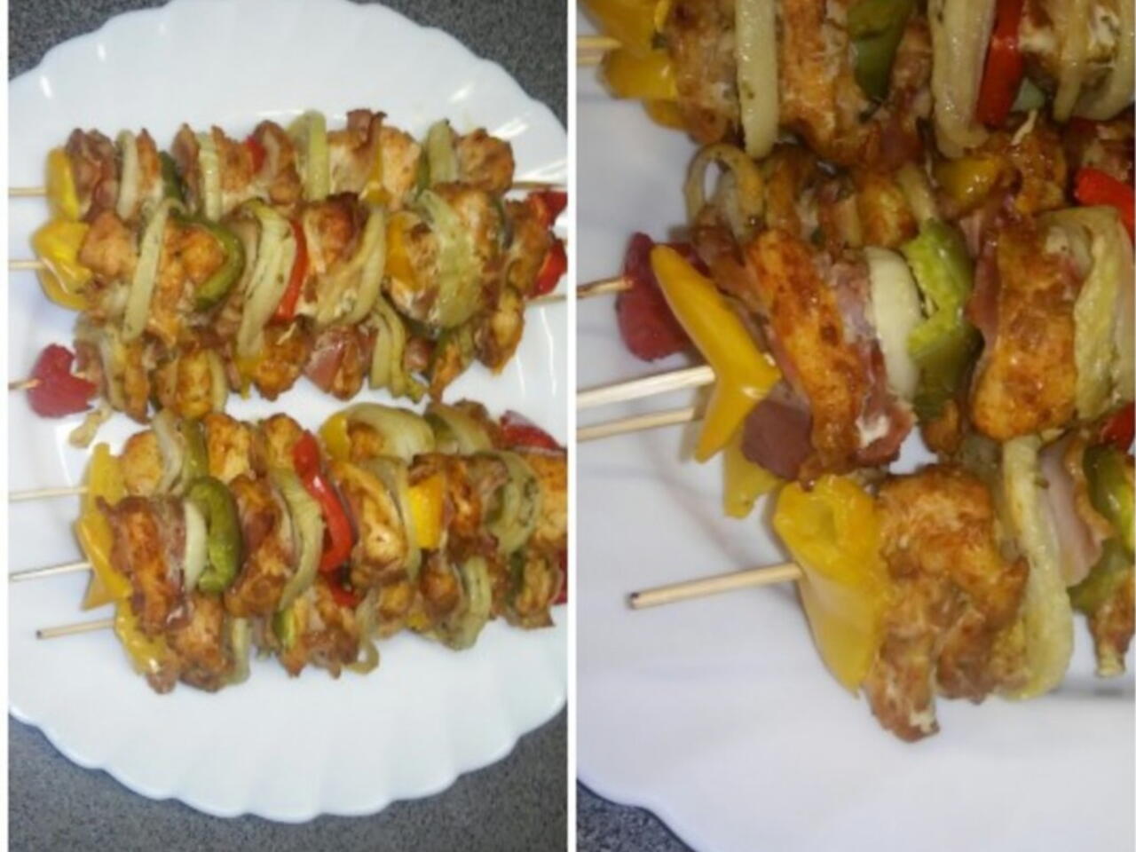Cebulę kroimy w plasterki,a resztę w kostkę. Cebulę przyprawiamy majerankiem. Mięso przyprawiamy według uznania. Przygotowujemy w180 stopniach w piekarniku, ewentualnie na grillu.