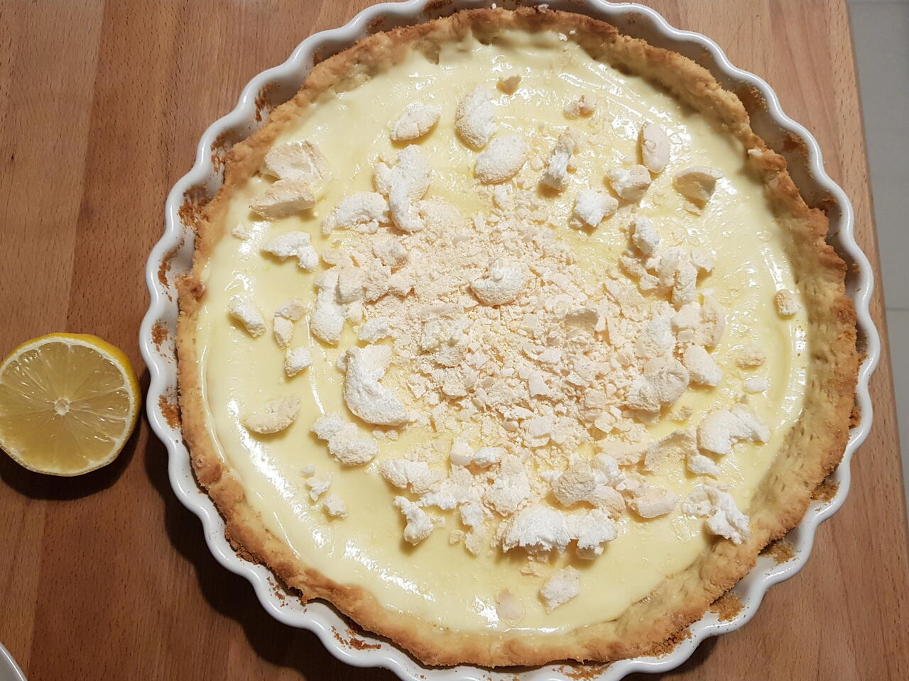 Po ostygnięciu spodu, rozprowadzamy równomiernie nasz krem cytrynowy. Następnie układamy bezę lub kruszymy. Chłodzimy w lodówce.