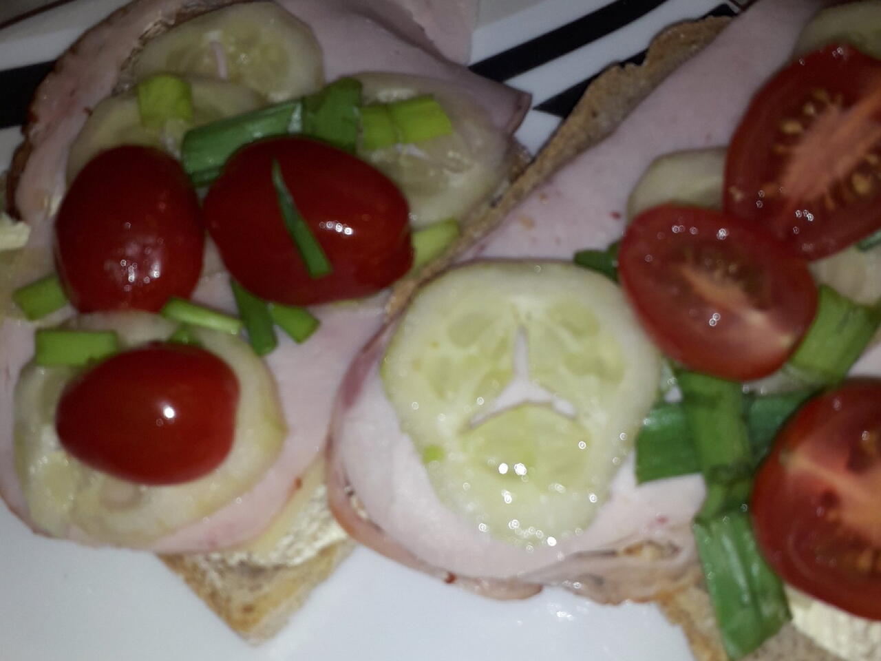 Następnie na 1 kanapkę nałóż 1 i pół pomidorka koktajlowego