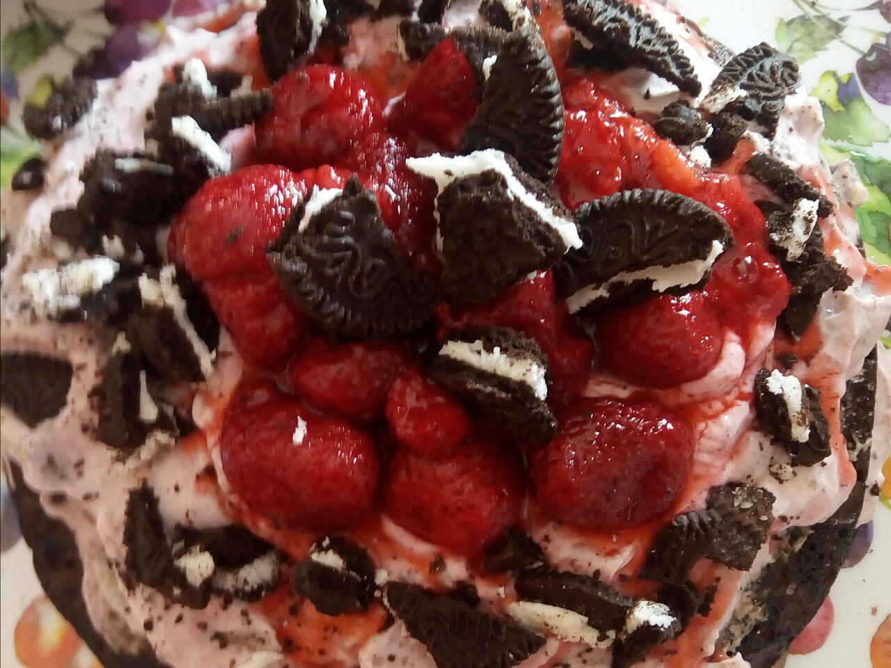 Ciastka oreo kruszymy i łączymy z serkiem.