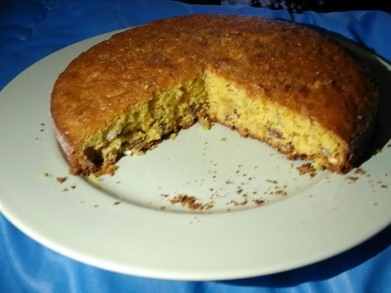 Unte uma forma redonda com margarina e polvilhe-a com farinha. Deite a mistura na forma e leve ao forno pré-aquecido a 180 graus, durante cerca de 45 minutos. Quando estiver cozido, retire-o do forno e deixe arrefecer antes de desenformar.