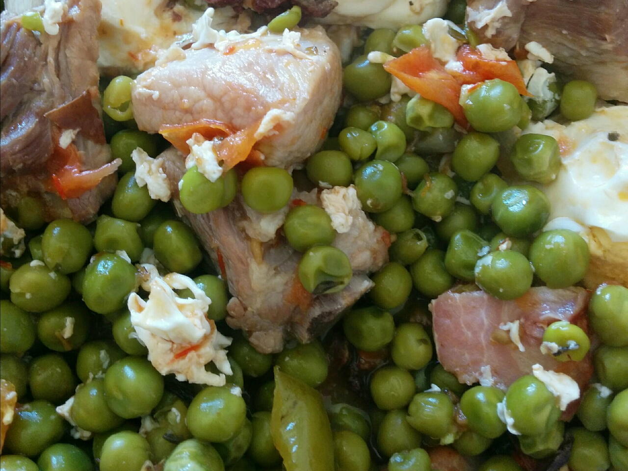 Acrescentei as ervilhas, já meio descongeladas. Deixei levantar fervura. Coloquei mais um pouco de vinho branco. Rectifiquei temperos e acrescentei 4 ovos partidos. Deixei levantar fervura e desliguei. Servi depois de 10 minutos.
