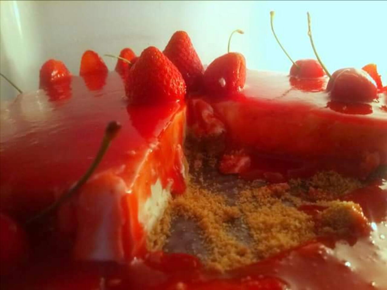 Verta então por cima dos morangos na forma, alise e leve ao frio até solidificar. Depois desenforme, regue com o puré de morangos que preparou e sirva decorado a gosto.