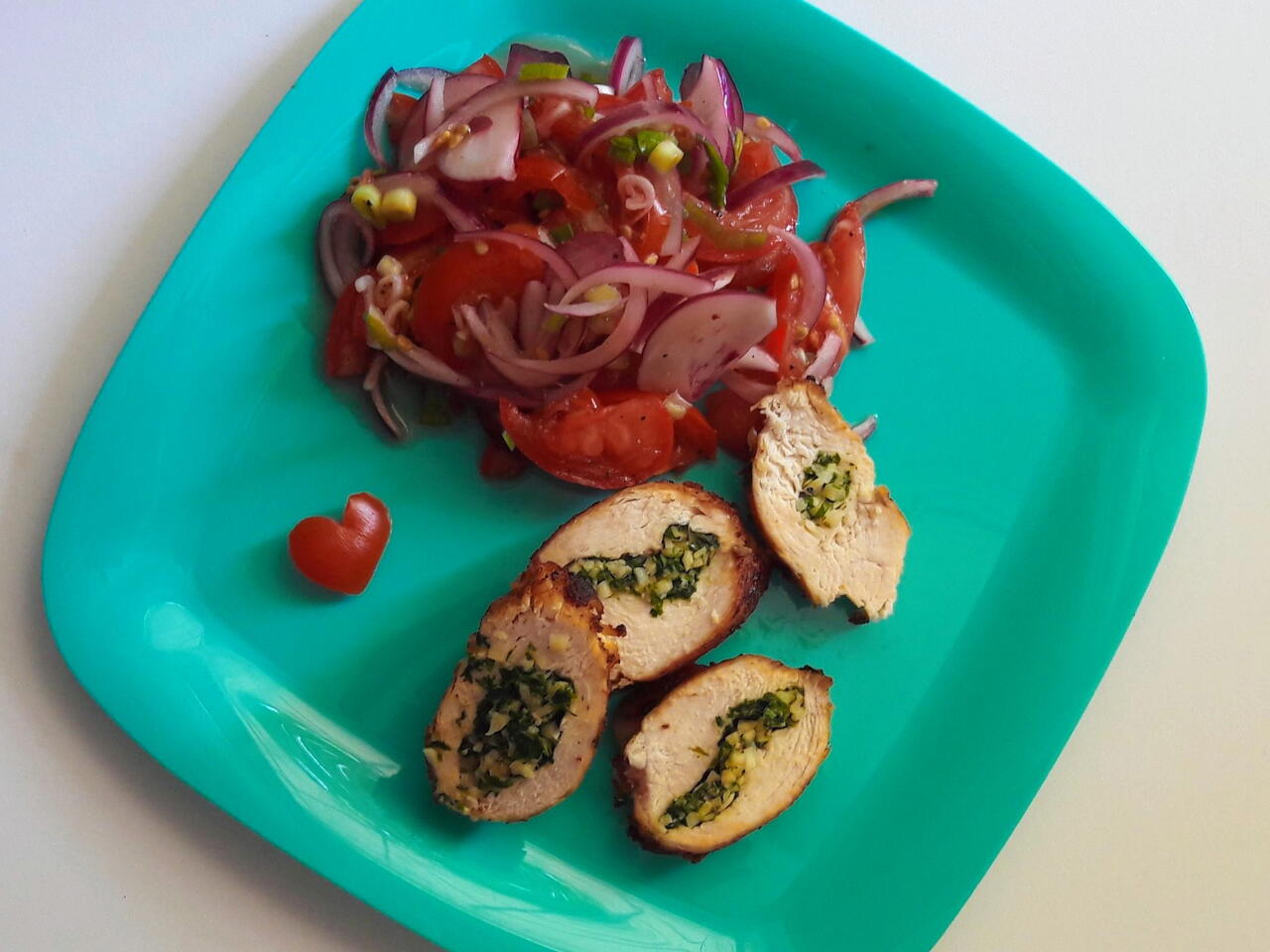 5. Tăvalește unul rece prin verdeața tocată,apoi pune fiecare baron pe cate o bucata de piept de pui.