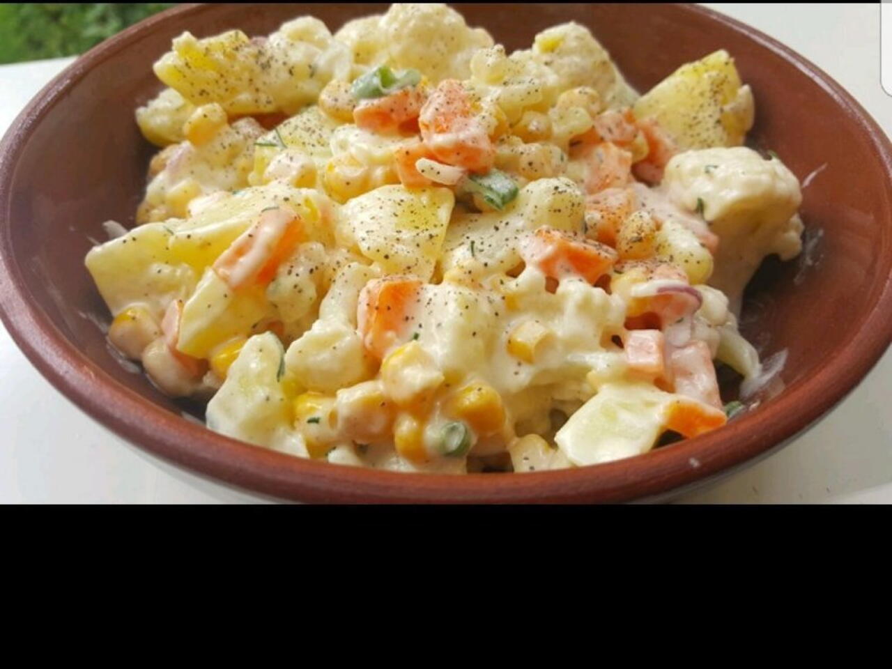 Se adauga si sosul peste salata, se amesteca bine si se da la frigider pt 10 minute.