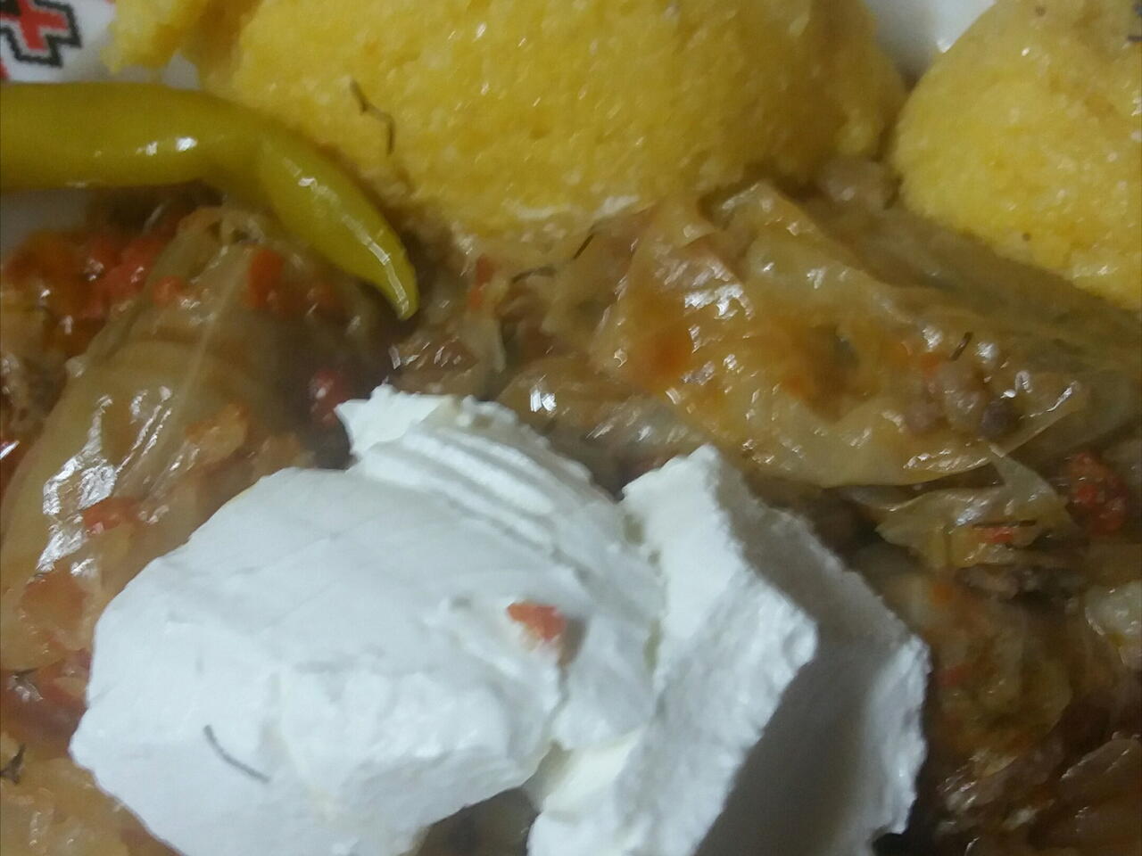 La calit putin se adauga un pahar de orez apoi carnea tocata toate acestea se calesc iar la final se pune sare piper foi de dafin si marar dupa gust apoi se invasora sarmaua si se pune la fiert.pofta buna! Pe langa adaugam si mamaliguta un ardei iute si o lingura de zmantana!