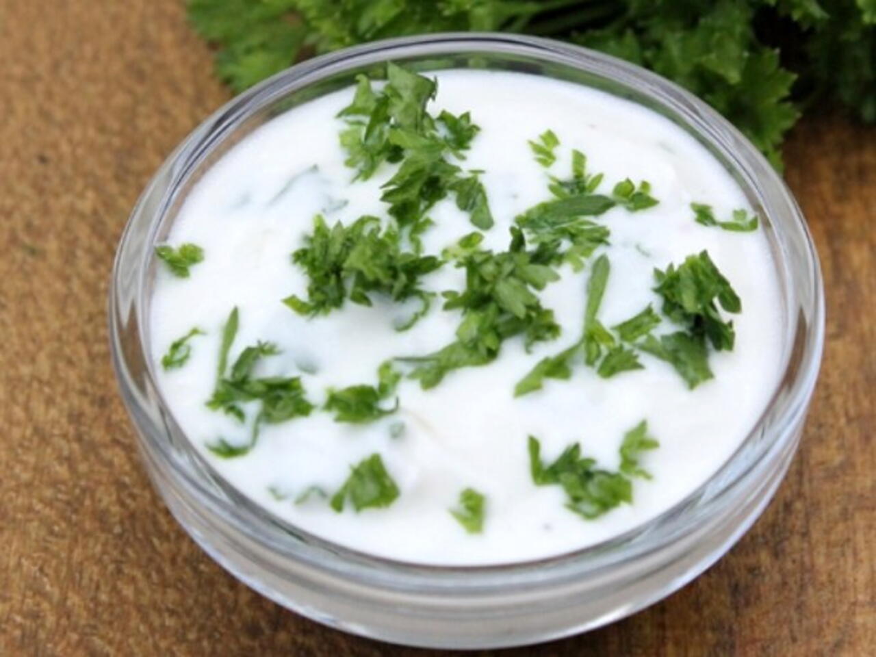 Sosul de iaurt cu usturoi se servește cu friptura.