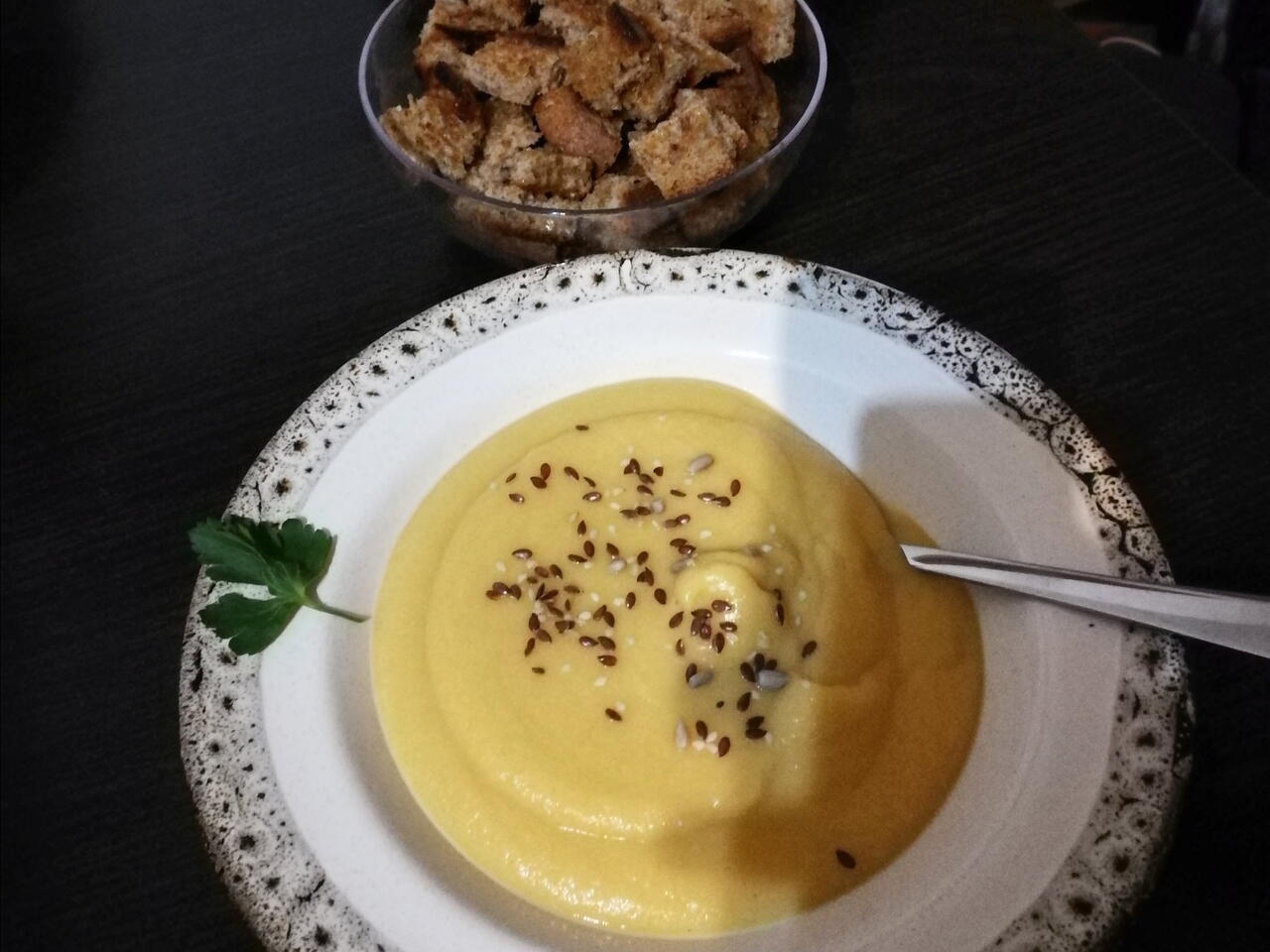 Se scurg apoi de apă și se pun într-un blender. Adaugam lapte(opțional) si apa in care au fiert legumele, adăugăm condimente sare, piper, delicat, etc. Servim cu crutoane.
