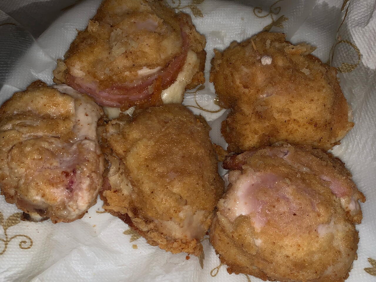 Kad napunite file ispohujete redom u brasno pa u jaja pa u prezlo. Ukoliko vam se otvara file zakacite ga cackalicama to sam ja uradila a posle izvadite. Sos posebno spremate u tiganju pecurke i vrhnje za kuvanje/pavlaka za kuvanje. Preko moze sos a i ne mora. Odvojite posebno sos sa strane ne morate preko da polivate sve. Uz jelo sluzite paradajiz salatu i krastavac salatu. PRIJATNO VAM! 🙂