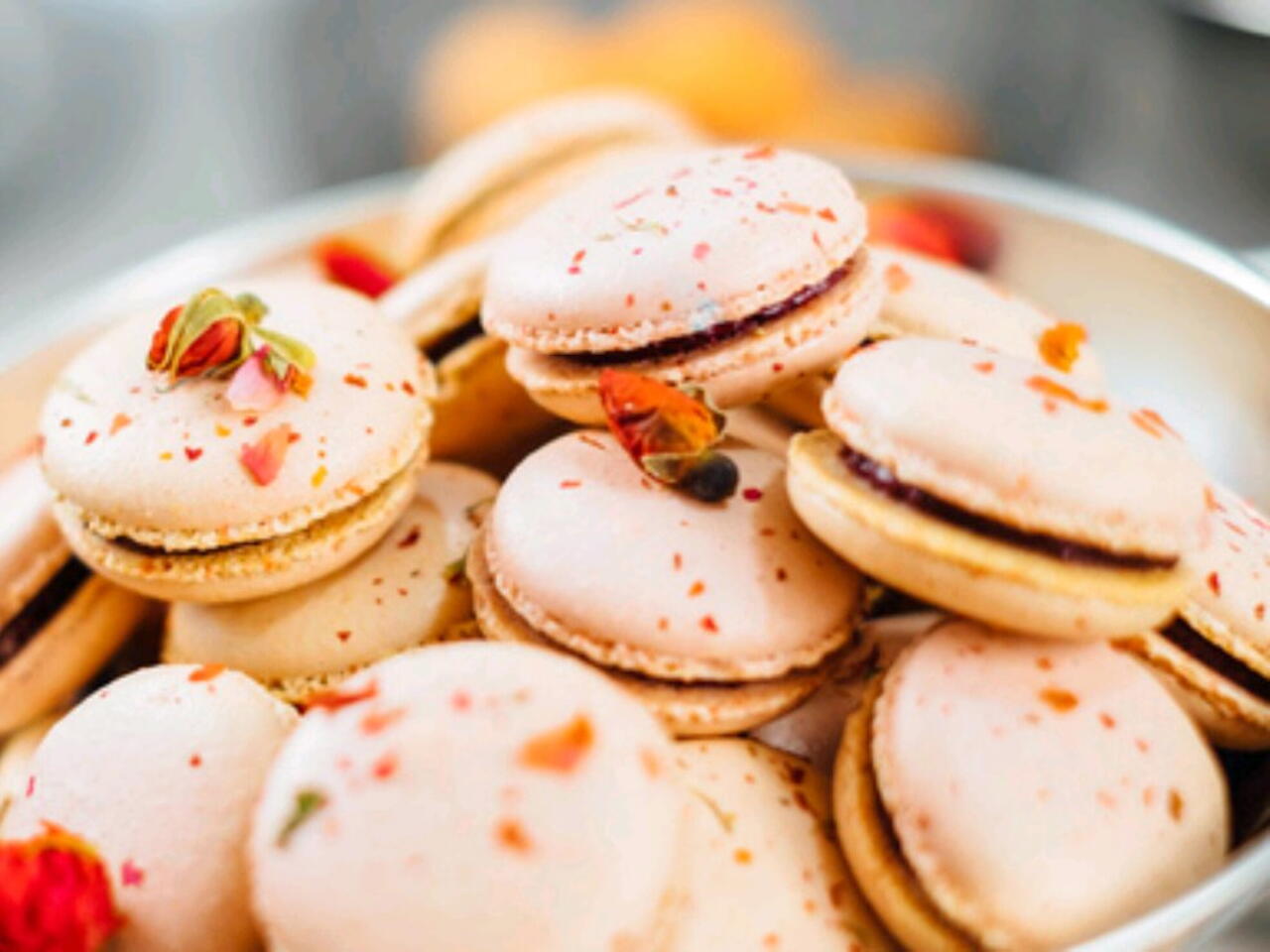 mutite belanca, šećer i so u čvrst sneg. Dodajte i jestivu boju po želji. U blenderu izmiksajte bademe i šećer u prahu u fini prah, te ga pažljivo dodajte ulupanim belancima. Pleh obložite papirom za pečenje i na njega pomoću kuhinjskog šprica istisnite krugove smese prečnika oko 3 cm. Važno: ne stavljajte pleh sa macaronsima odmah u rernu, već ih pustite da odstoje 15–20 minuta. Pecite ih u prethodno ugrejanoj rerni na 160 stepeni oko 15 minuta. Kada se ohlade, jednu polovinu premažite džemom o