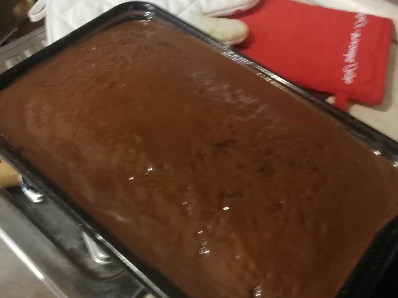 Vruć kolač premazati topljenom čokoladom.