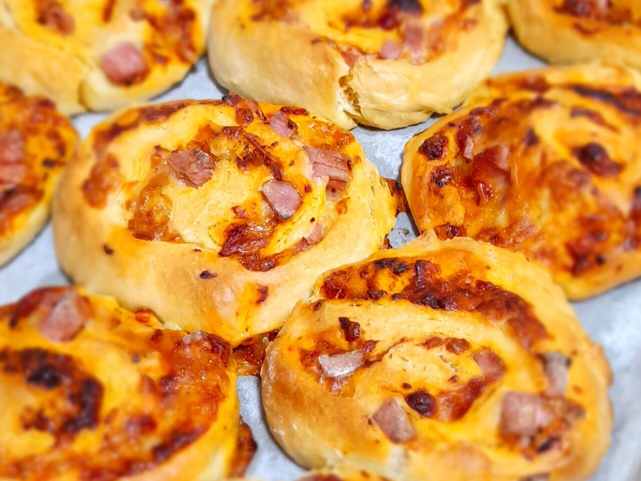 Uviti u rolat, iseći na šnite debljine kao dva prsta, i ređati na pleh obložen pek papirom. Isto ponoviti sa drugim rolatom. Peći u rerni zagrejanoj na 200°C, 20 min dok lepo ne porumeni. PRIJATNO!