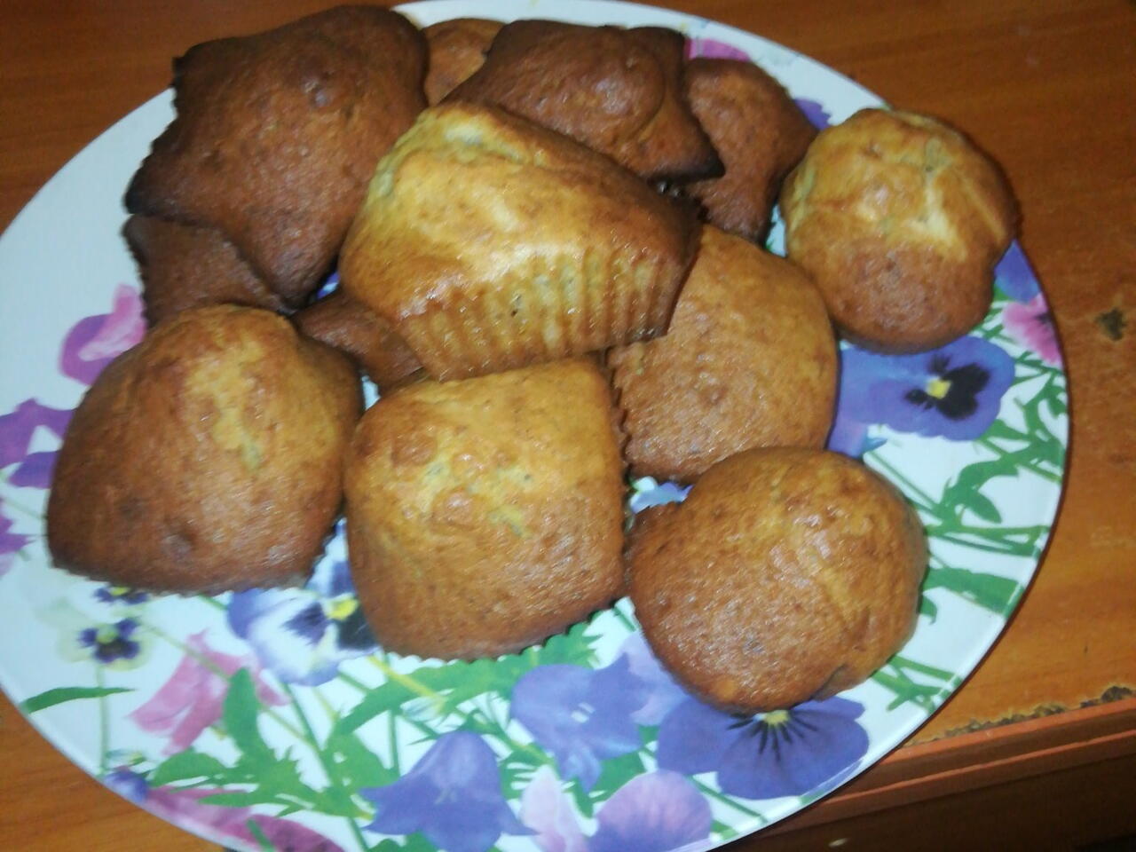 Хорошо сочитается с топленным шоколадом(в моем случае шоколадный сироп), по готовности просто полейте маффины им.