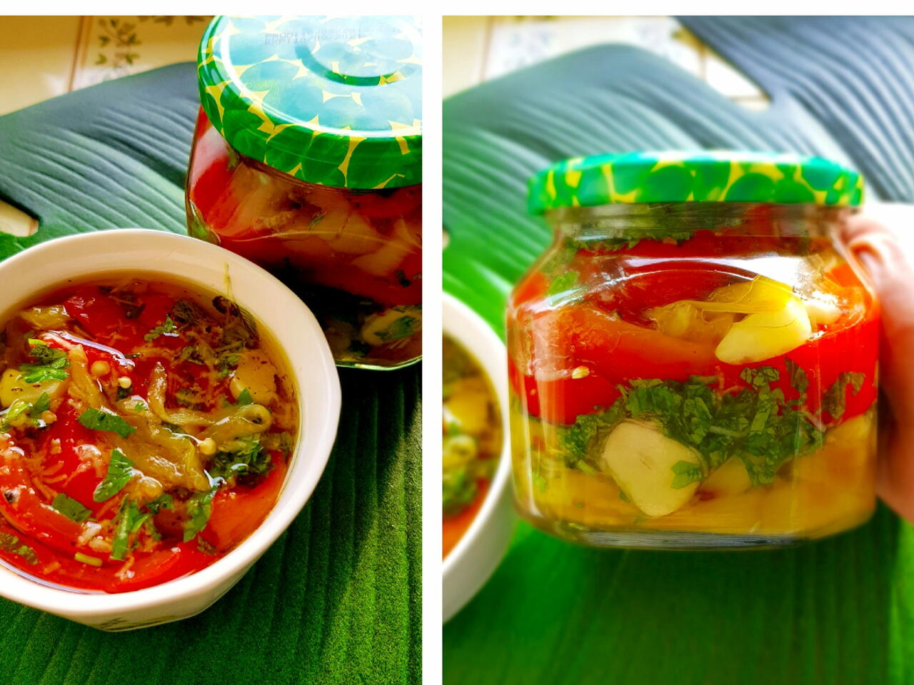 Чередовать перец и заливку.