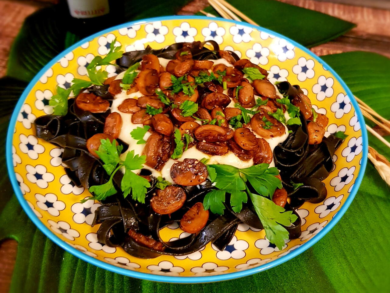 Черная Паста С Бешамель Дор Блю И Грибами